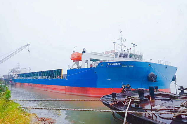 9500載重噸級甲板運(yùn)輸船離泊2023年8月14日上午,云南能投聯(lián)合外經(jīng)股份有限公司與江蘇正嶼船舶重工有限公司合作建造的一艘9500載重噸級...